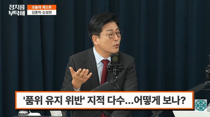 국민의힘 김종혁 전 최고위원(경기 고양병 당협위원장)은 앞서 당내 당무감사위원회가 ‘당원권 정지 2년’ 징계를 권고한 데 대해 “저한테 ‘지구는 평평하다’고 얘기하라는 것”라며 “그래도 지구는 돈다”고 비판했다. 당무위는 김 전 최고위원이 방송에서 당과 당원을 폄하했다는 이유로 조사를 벌인 뒤 징계를 권고했다.