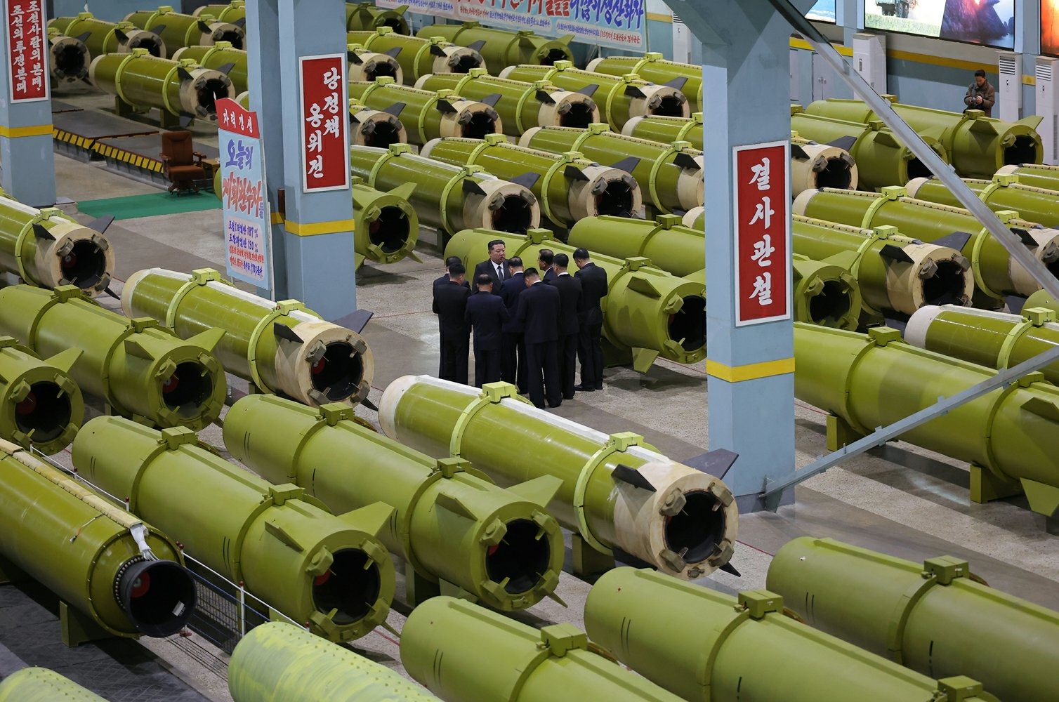 (평양 노동신문=뉴스1) = 북한 노동당 기관지 노동신문은 김정은 당 총비서가 중요군수공업기업소들을 방문하고 올해 미사일 및 포탄생산부문 실적과 4·4분기 생산실태를 점검했다고 26일 보도했다. [국내에서만 사용가능. 재배포 금지. DB 금지. For Use Only in the Republic of Korea. Redistribution Prohibited] rodongphoto@news1.kr