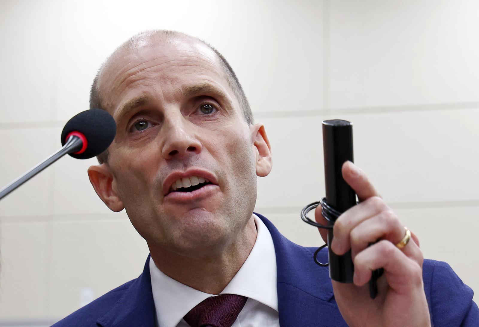 해롤드 로저스 쿠팡 대표이사가 30일 서울 여의도 국회에서 열린 쿠팡 침해사고 및 개인정보 유출, 불공정 거래, 노동환경 실태 파악과 재발방지 대책 마련을 위한 연석 청문회에서 최민희 과방위원장의 동시통역기 착용 요구에 대해 입장을 밝히고 있다. 2025.12.30.