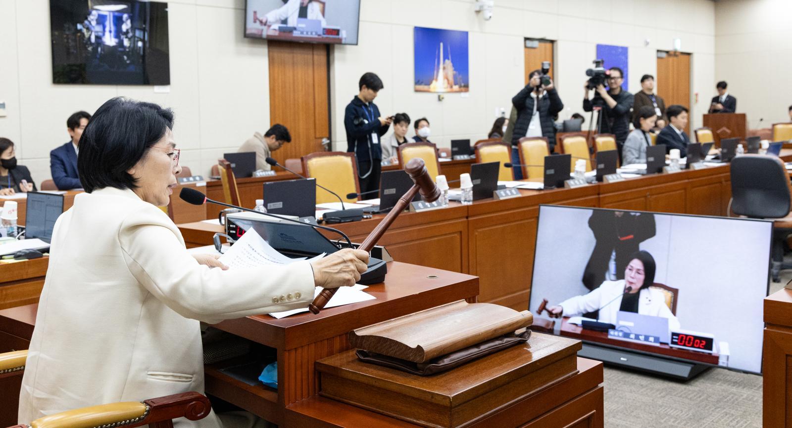 서울 여의도 국회에서 열린 제430회국회(임시회) 과학기술정보방송통신위원회 제1차 전체회의에서 최민희 과방위 위원장이 국민의힘 위원들이 퇴장한 가운데 정보통신망법 일부 개정안을 의결하고 있다. 2025.12.10/뉴스1