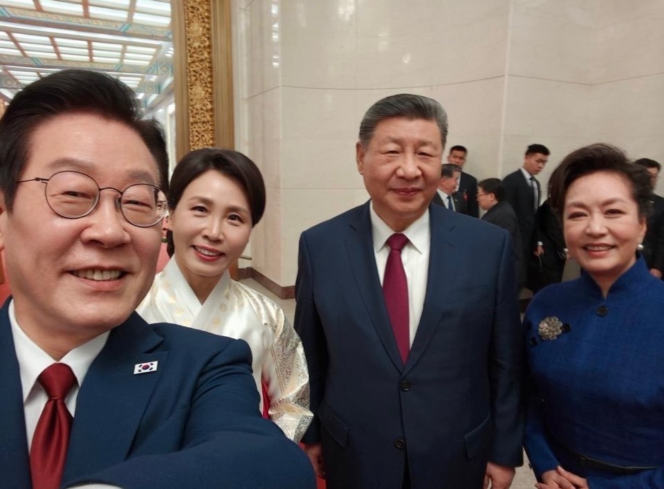 이재명 대통령이 부인 김혜경 여사, 시진핑(習近平) 중국 국가주석 부부와 함께 찍은 사진을 공개했다. 지난해 11월 시 주석이 선물한 샤오미 15 울트라로 직접 사진을 촬영했다. 이 대통령은 “덕분에 인생샷 건졌습니다 ㅎㅎ”라고 했다.