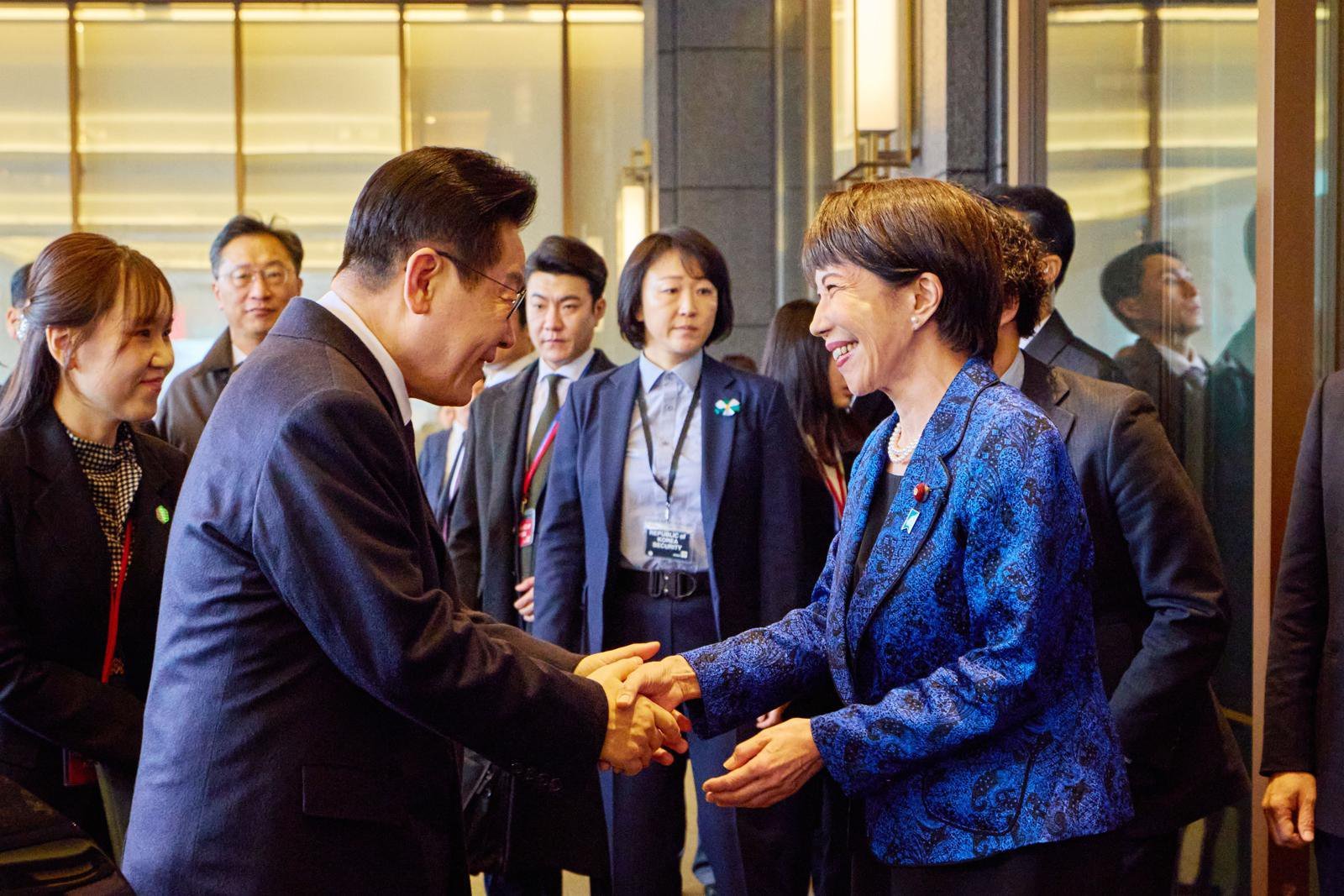 13일 일본을 방문한 이재명 대통령을 다카이치 사나에(高市早苗) 일본 총리가 직접 숙소 앞에서 영접하며 극진히 환영했다고 청와대가 밝혔다.