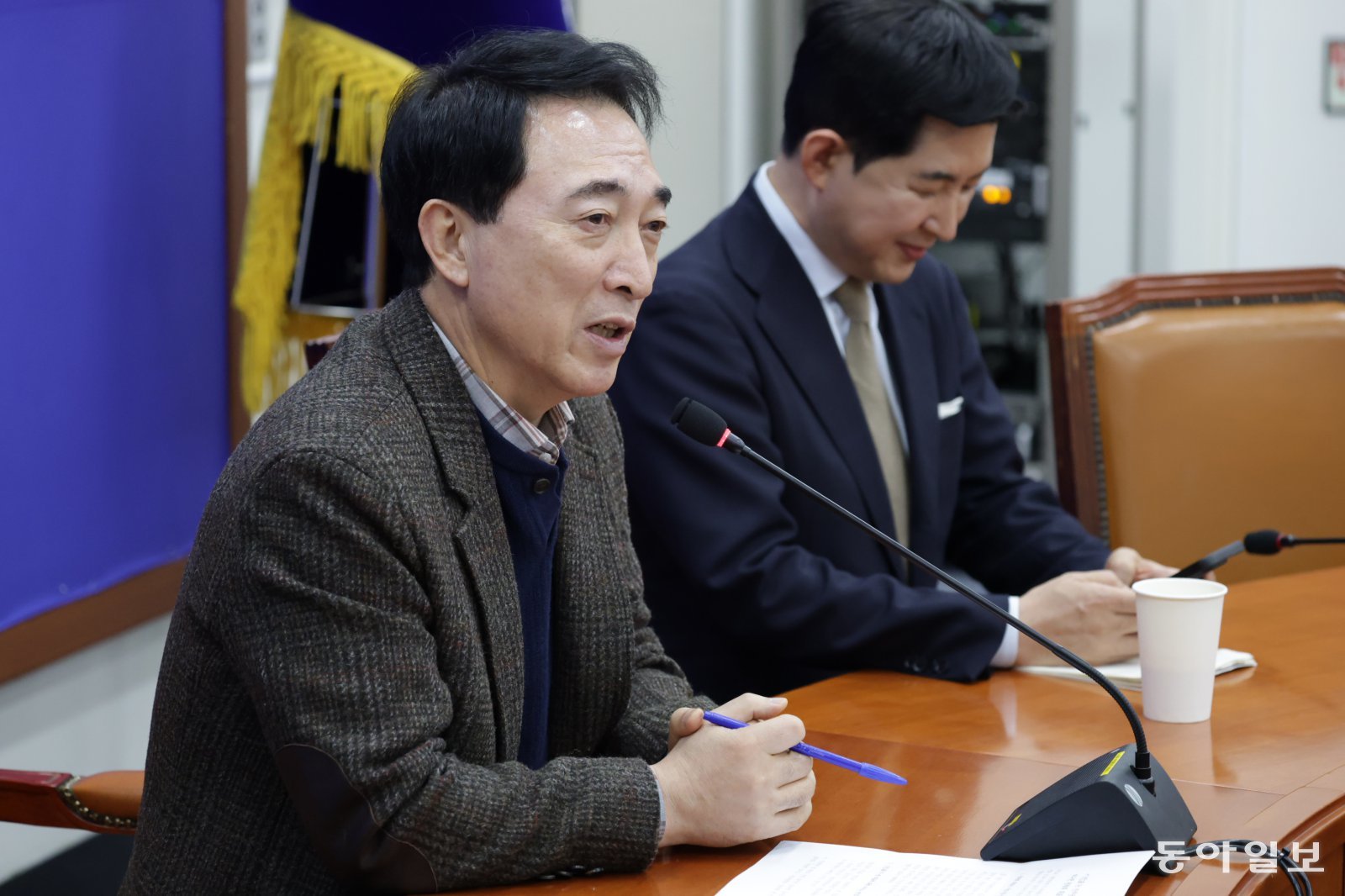 더불어민주당 박수현 수석대변인이 18일 국회 기자간담회에서 발언하고 있다. 박형기 기자 oneshot@donga.com