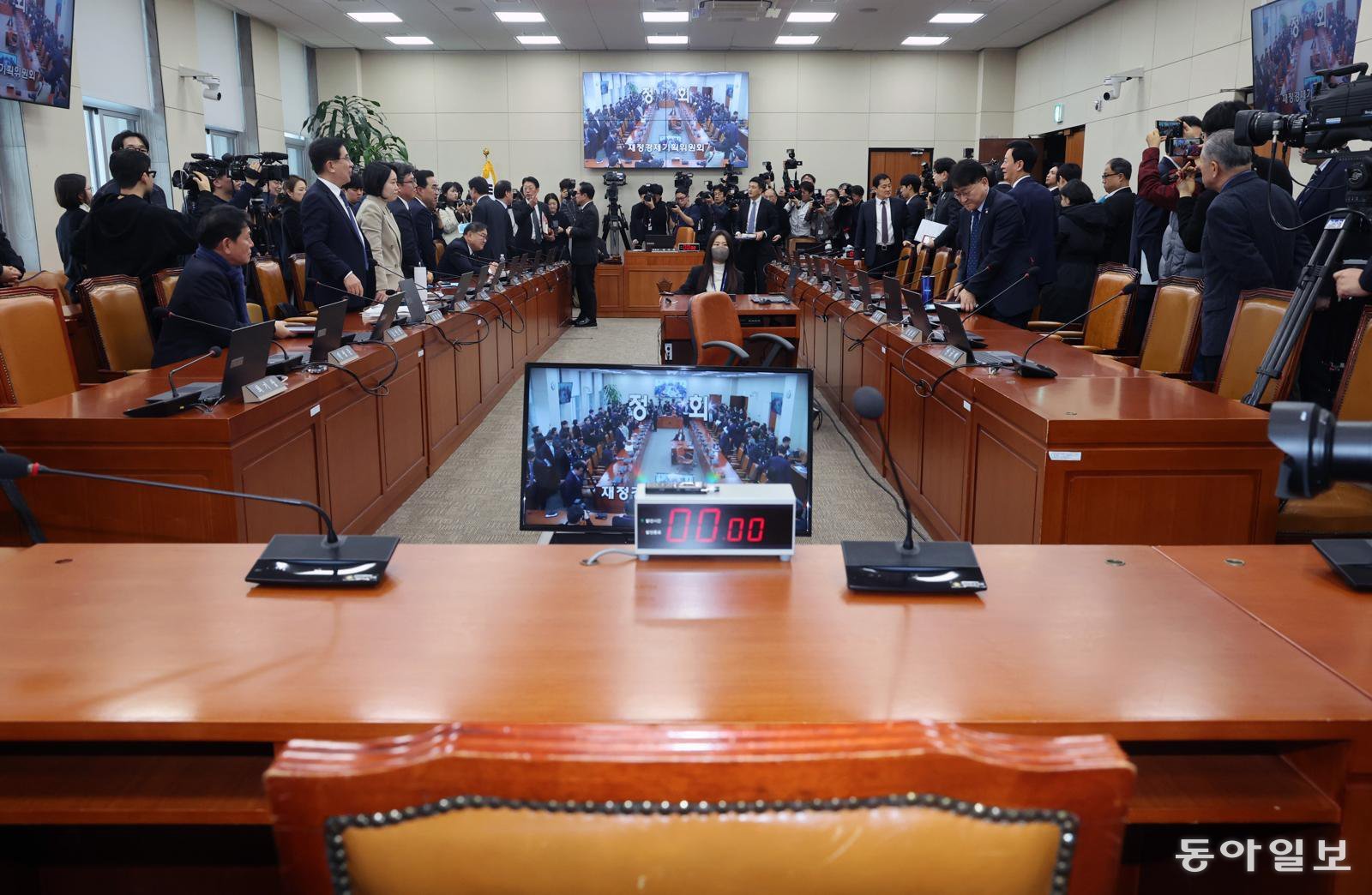 수십억 원대 서울 강남 아파트 부정 청약 및 보좌진 갑질 의혹 등을 받고 있는 이혜훈 기획예산처 장관 후보자 인사청문회가 19일 파행됐다. 이날 전체회의에선 이 후보자 인사청문안이 ‘자료 제출 미비’를 이유로 상정되지 않아 이 후보자는 회의장에 참석하지 못했다. 이 후보자 자리가 비워진 채로 여야가 공방을 벌이고 있다. 장승윤 기자 tomato99@donga.com