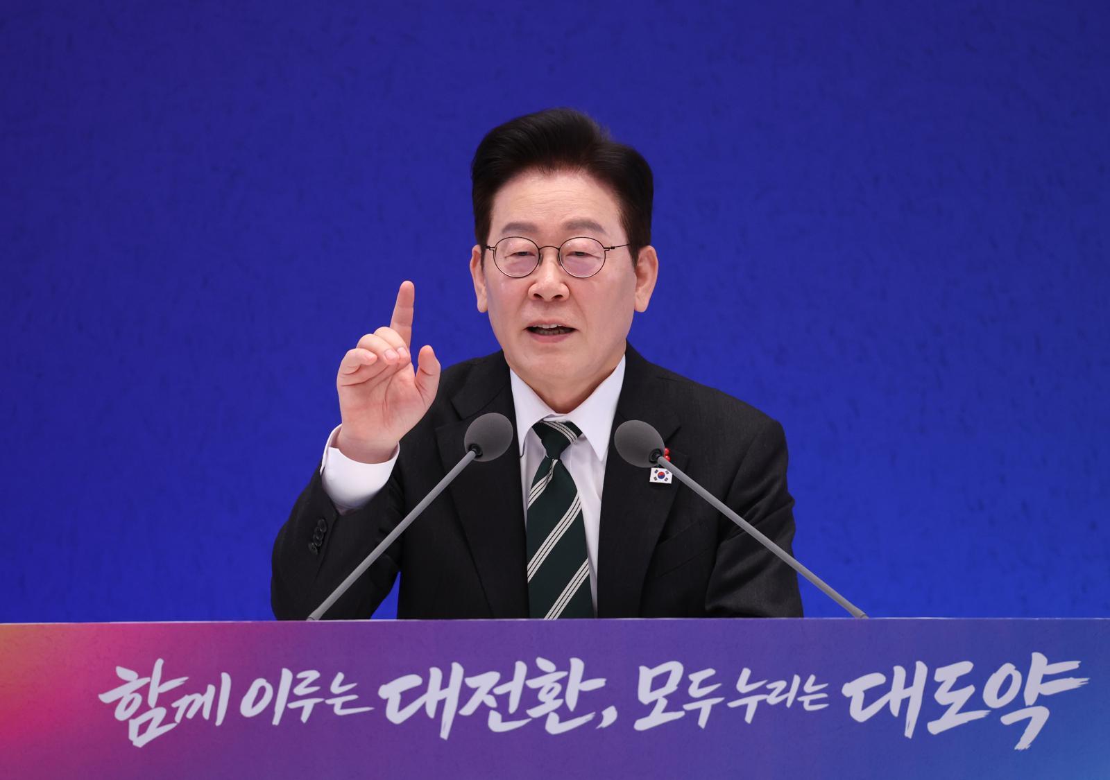 이재명 대통령이 21일 청와대 영빈관에서 2026 신년 기자회견 ‘함께 이루는 대전환, 모두 누리는 대도약’에서 언론의 질문에 답하고 있다. 2026.01.21 청와대사진기자단