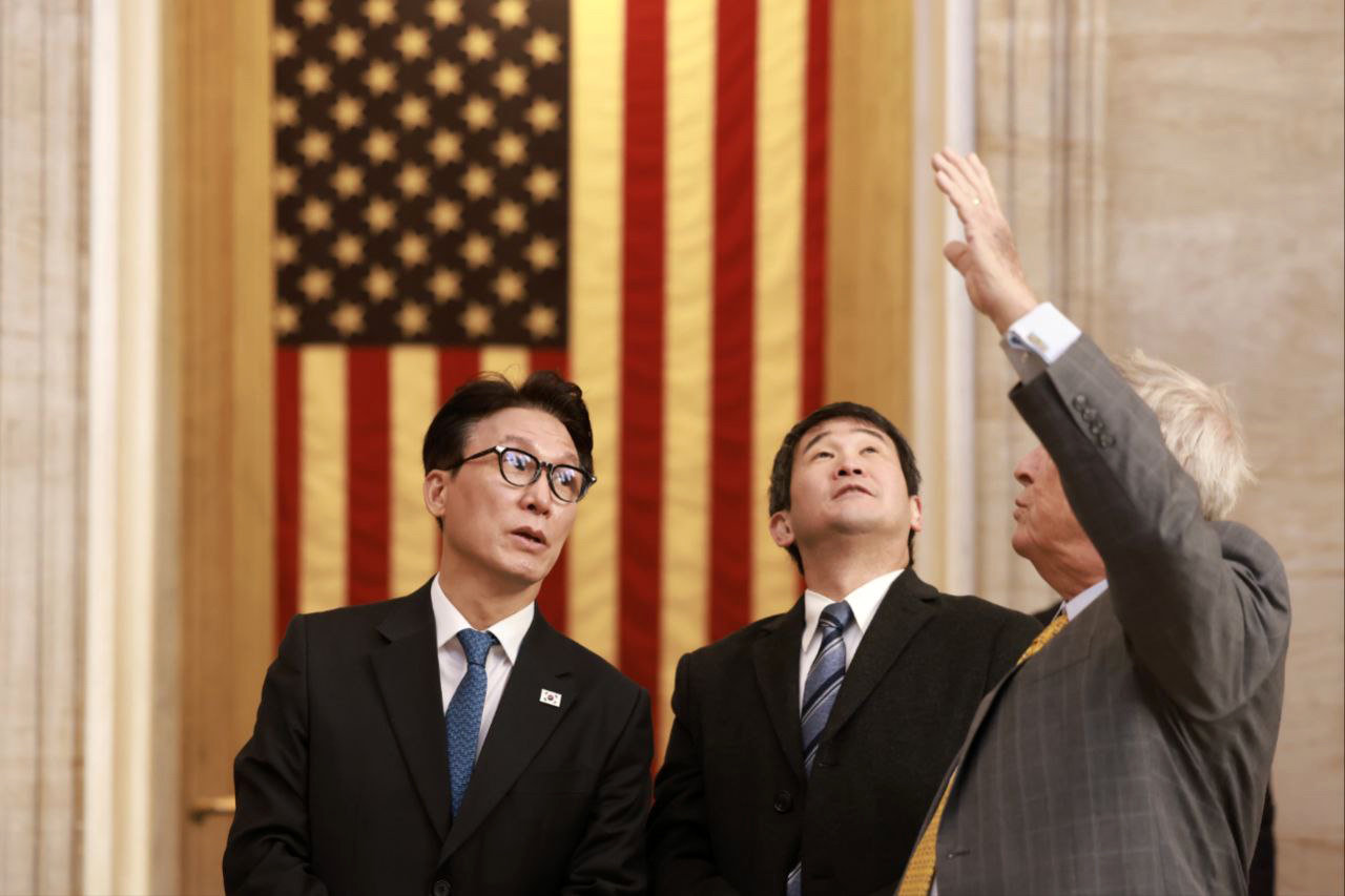 미국을 방문 중인 김민석 국무총리가 22일(현지시간) 미국 워싱턴 DC 소재 미국 국회의사당에서 열린 미 하원 주요인사 초청 오찬 간담회에 참석해 의회 관련 설명을 듣고 있다. (사진=총리실 제공) 2026.01.23. [서울=뉴시스]