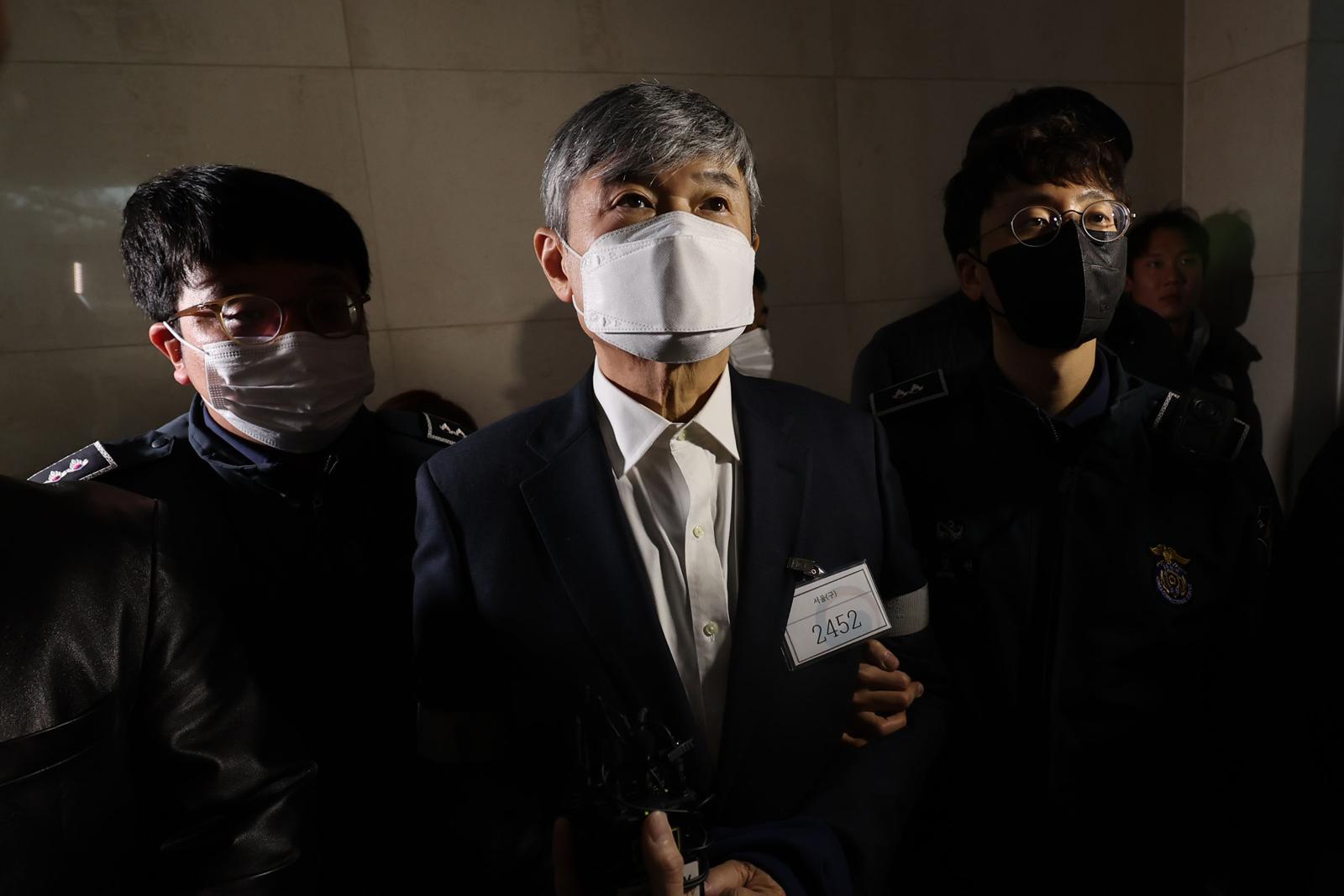 조 전 원장은 흰색 와이셔츠와 회색 정장을 착용하고 법정에 출석했다.