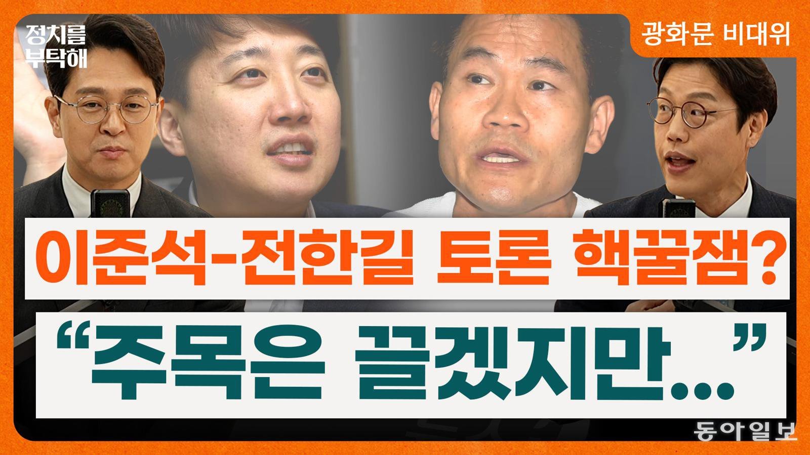 ▷ 강경석: 민주당과 국민의힘 모두 서울시장 자리를 놓고 지금 치열한 경쟁이 시작됐는데 앞으로 이 움직임들 저희가 한번 또 잘 해석해 보겠습니다. 마지막 저희가 준비한 네 번째 의제 살펴보겠습니다. 이준석 개혁신당 대표와 전한길 씨 보수 유튜버죠. 제대로 붙게 됐습니다. 이 이준석 대표 부정선거론자 전한길 씨에게 토론해 보자. 뭐 본인은 1대 100으로 하겠다고 했는데 1 대 4 토론이 됐죠. 25일로 일단 합의가 됐습니다. 이준석 대표 혼자서 전한길 씨를 비롯한 보수 소위 보수라고 하기는 좀 그렇지만 부정 선거 세력들과 1 대 4 토론을 하겠다는 건데 이준석 대표는 40명도 본인이 맞서겠다고 했어요. 그런데 어쨌든 지금 1 대 4로 확정이 됐습니다. 이 와중에 예능보다 더 재미있을 것 같다.이제 이렇게 말씀하시는 분들도 많단 말이죠. 정 의원님 이 부정 선거 토론 좀 타이밍이 좀 어떤지 좀 잘 모르겠는데 과연 이 토론 어떤 배경에서 성사가 된 거라고 보시나요?