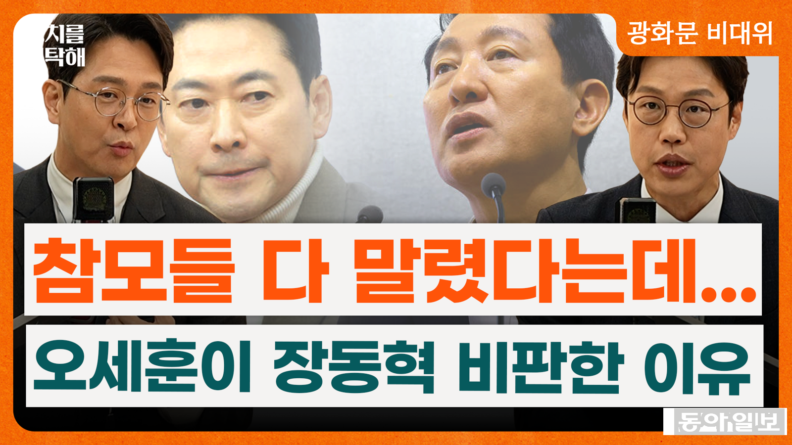 함께 출연한 정광재 동연정치연구소장은 오 시장이 장 대표의 사퇴를 요구하는 것과 관련해 “지방선거에서 이기려고 하는 것”이라고 했다. ‘지방선거 뒤 당대표 선거까지 염두에 둔 발언인가’라는 물음엔 “만약 서울시장 선거에서 떨어졌는데 과연 그 자리에 본인 의지대로 갈 수 있겠나”라고 했다.
