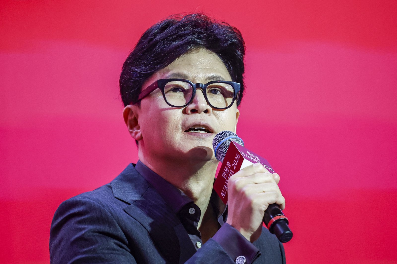 한동훈 전 국민의힘 대표가 8일 서울 송파구 잠실실내체육관에서 열린 토크콘서트 2026에서 발언하고 있다. 2026.02.08 뉴시스