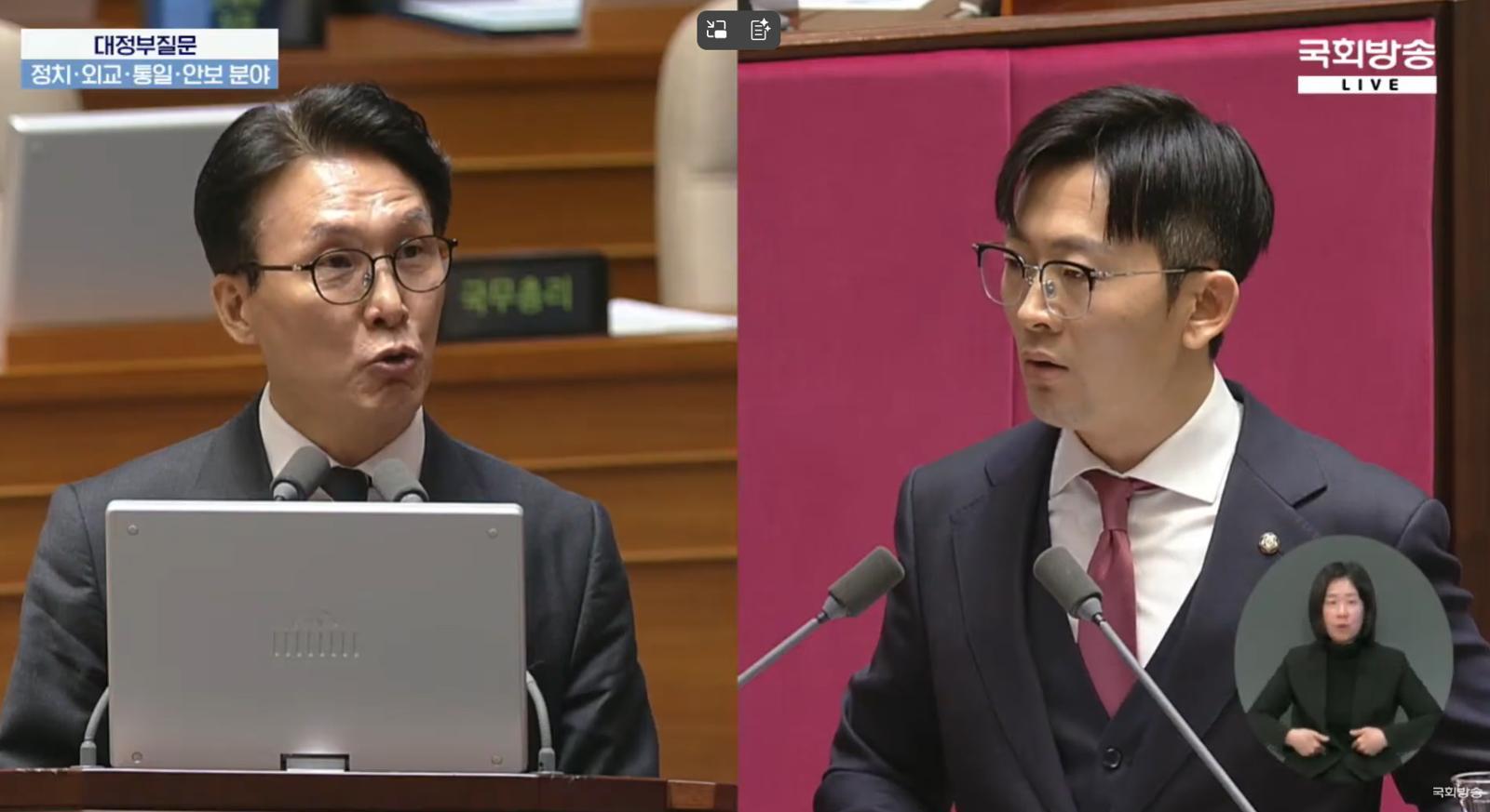 “(아무 것도 없고) ‘김정은 심기보좌’밖에 없다.” (국민의힘 박충권 의원) “얻다 대고 국군에 대해 아무 것도 없다고.” (김민석 국무총리)