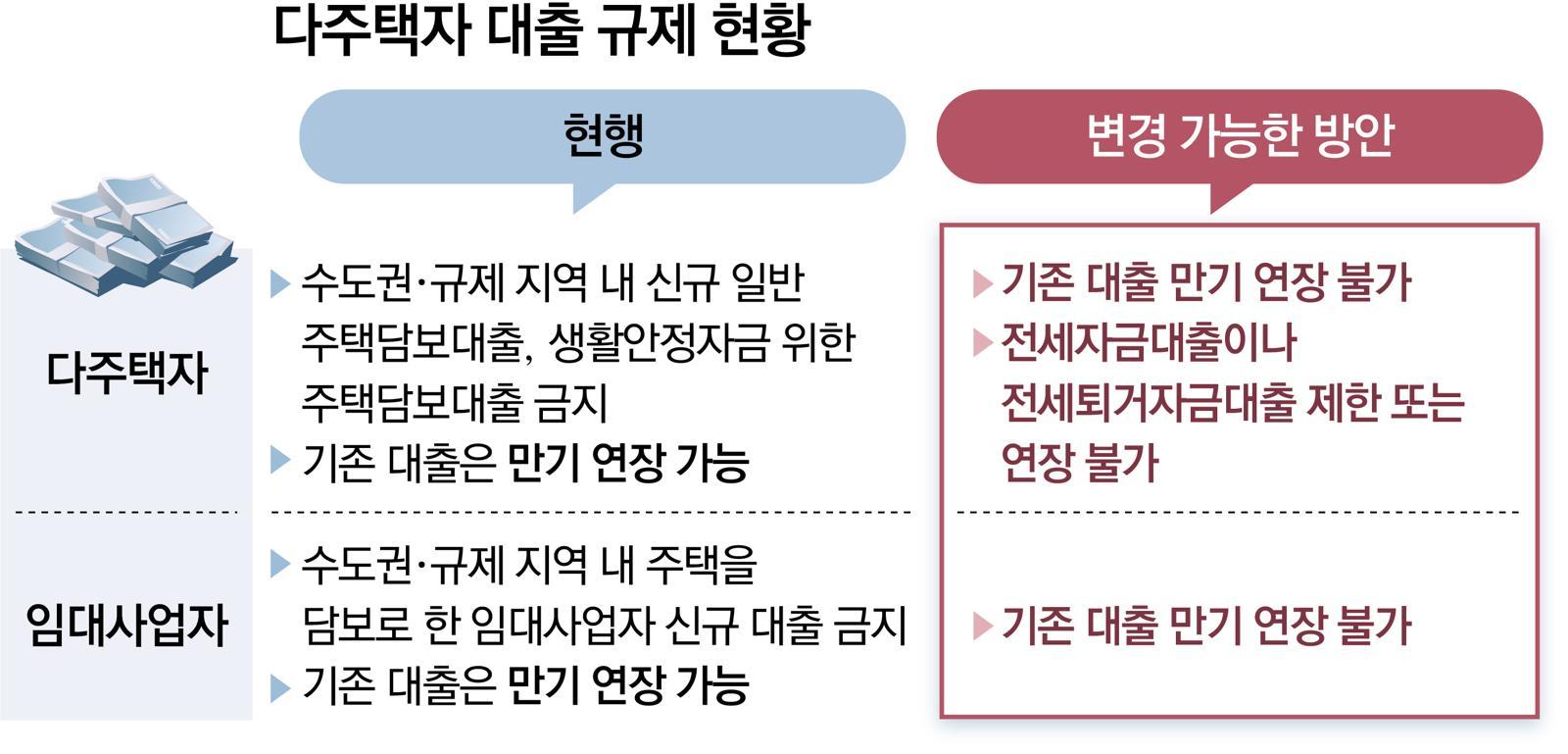 다주택자의 대출 만기 연장이 금지되면 원금을 한꺼번에 갚아야 하는 임대사업자들을 중심으로 매물이 늘 수 있다.