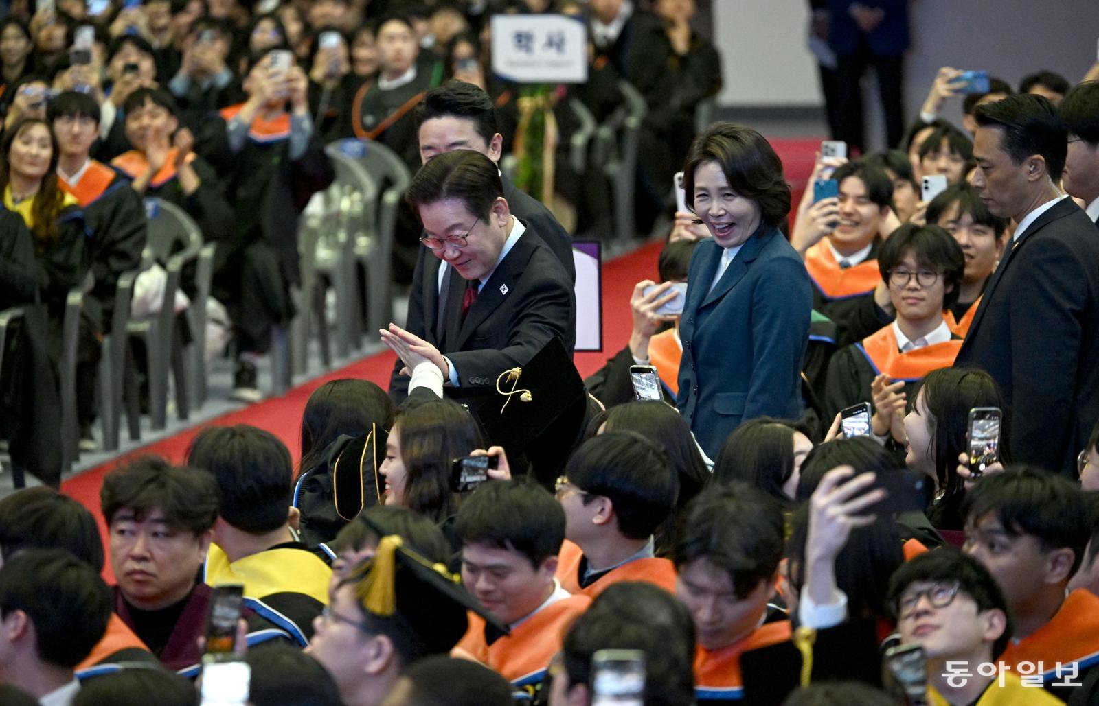 이재명 대통령과 김혜경 여사가 20일 오후 대전 카이스트에서 열린 카이스트(KAIST) 학위수여식에 참석하고 있다. 대전=송은석 기자 silverstone@donga.com