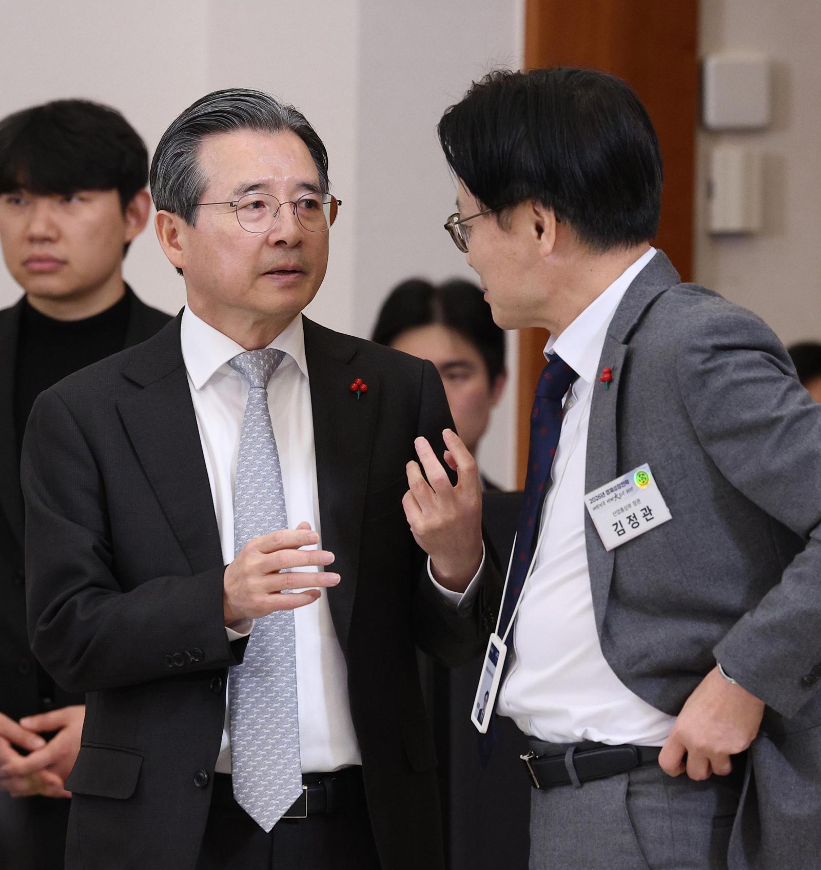 미국 연방대법원이 상호관세에 대해 위법 판결을 내린 가운데 청와대는 21, 22일 대책회의를 소집하며 긴급 대응에 나섰다. 사진은 김용범 대통령정책실장(왼쪽)과 김정관 산업통상부 장관(오른쪽)이 지난달 9일 청와대에서 대화를 나누고 있는 모습. 청와대사진기자단
