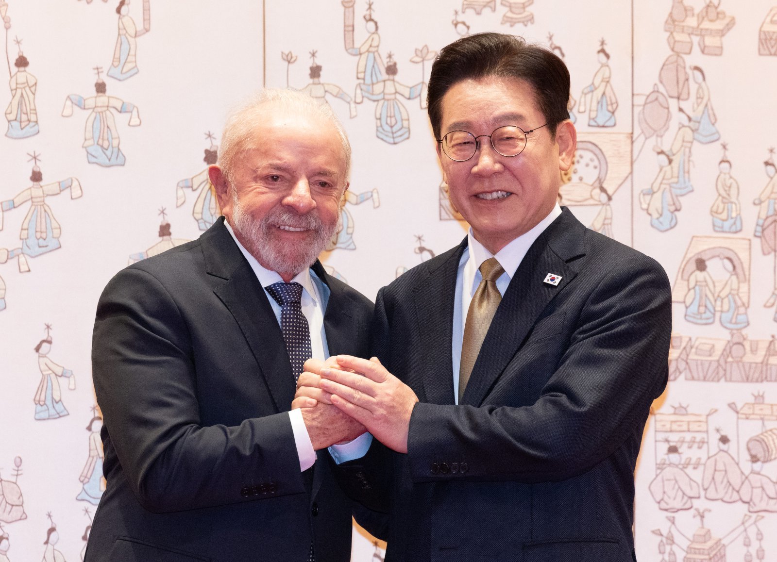 이재명 대통령이 23일 청와대에서 국빈 방한한 브라질 루이스 이나시우 룰라 다 시우바 대통령을 영접하고 있다. 2026.02.23. 서울=뉴시스이 대통령은 룰라 대통령에 대해 “소년노동자 출신으로, 민주주의가 사회 경제 발전에 가장 유용한 도구임을 온 몸으로 증명했다”며 “민주주의 파괴와 함께 형극의 길을 잠시 걸었으나 위대한 브라질 국민들과 함께 강건하게 부활해 이제는 브라질을 부활시키고 있다”고 했다.