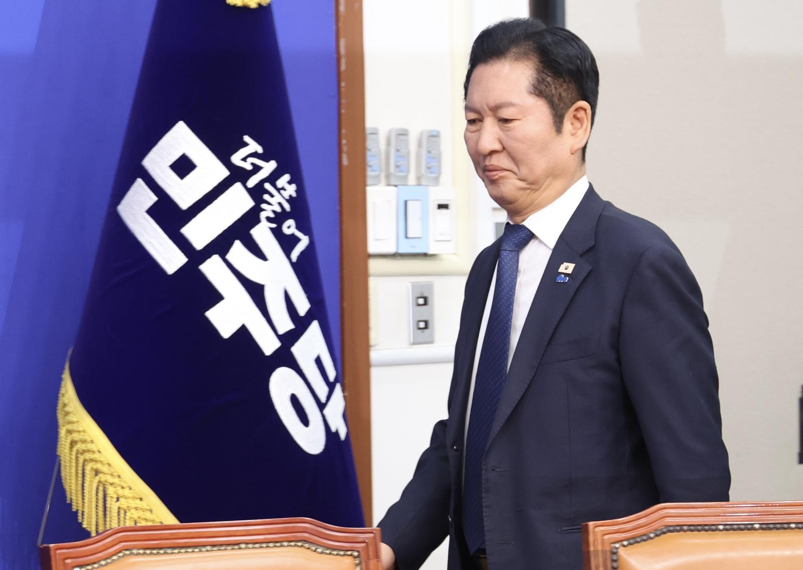 정청래 더불어민주당 대표가 23일 오전 서울 여의도 국회에서 열린 최고위원회에 참석하고 있다. 뉴시스