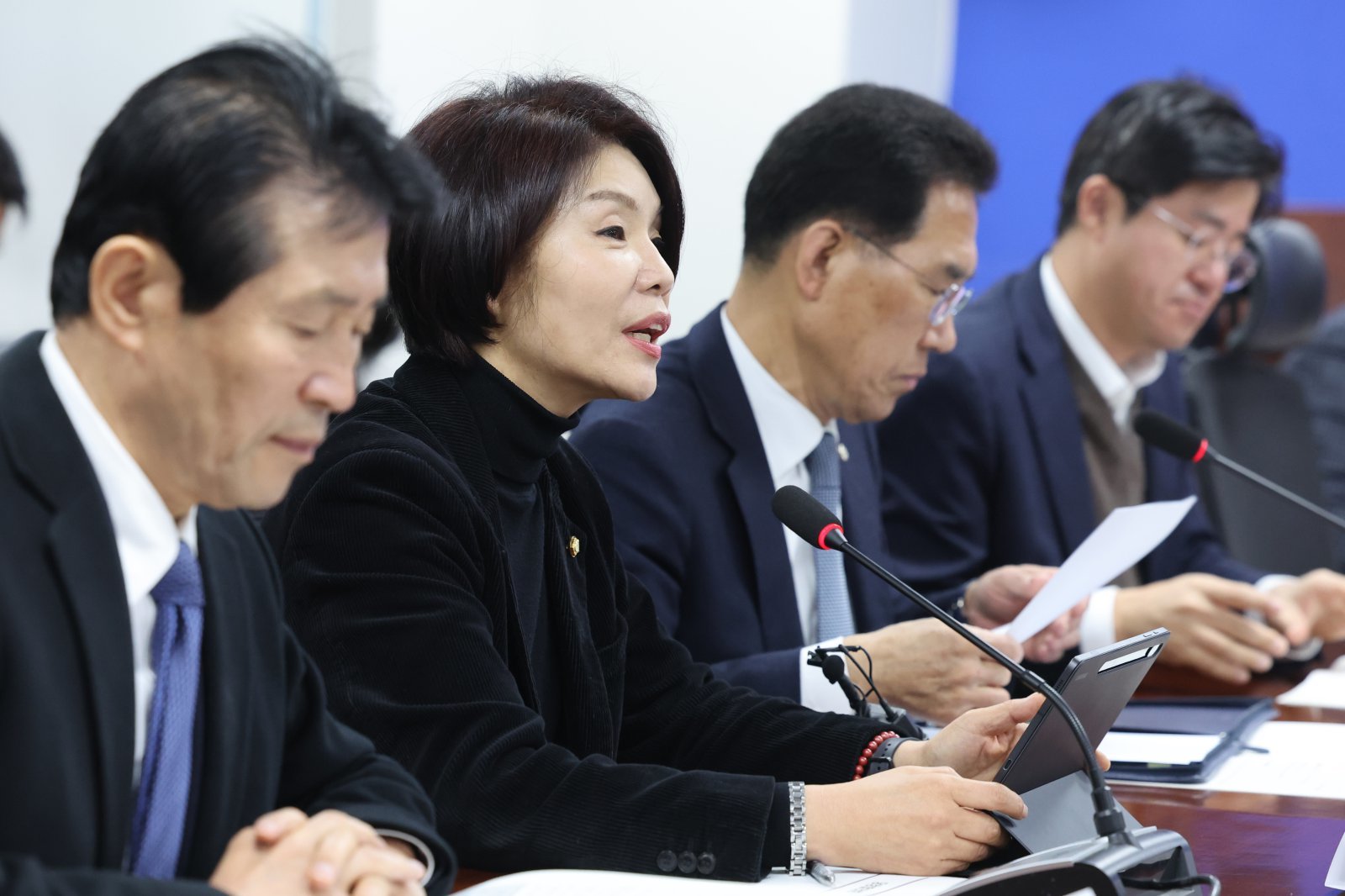 한정애 더불어민주당 정책위의장이 23일 서울 여의도 국회 의원회관에서 열린 고용노동부 당정협의회에서 발언하고 있다. 2026.2.23 ⓒ 뉴스1
