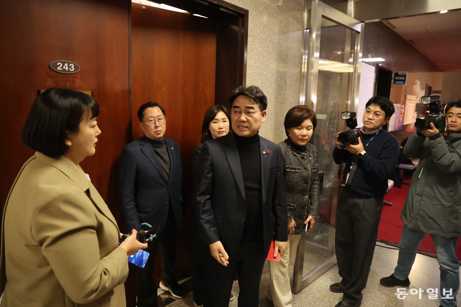 국민의힘 소장파 모임 ‘대안과 미래’ 이성권, 조은희의원등이 4일 오후 서울 여의도 국회에서 장동혁 국민의힘 대표와의 면담을 마친 뒤 이동하고 있다. 장승윤 기자 tomato99@donga.com