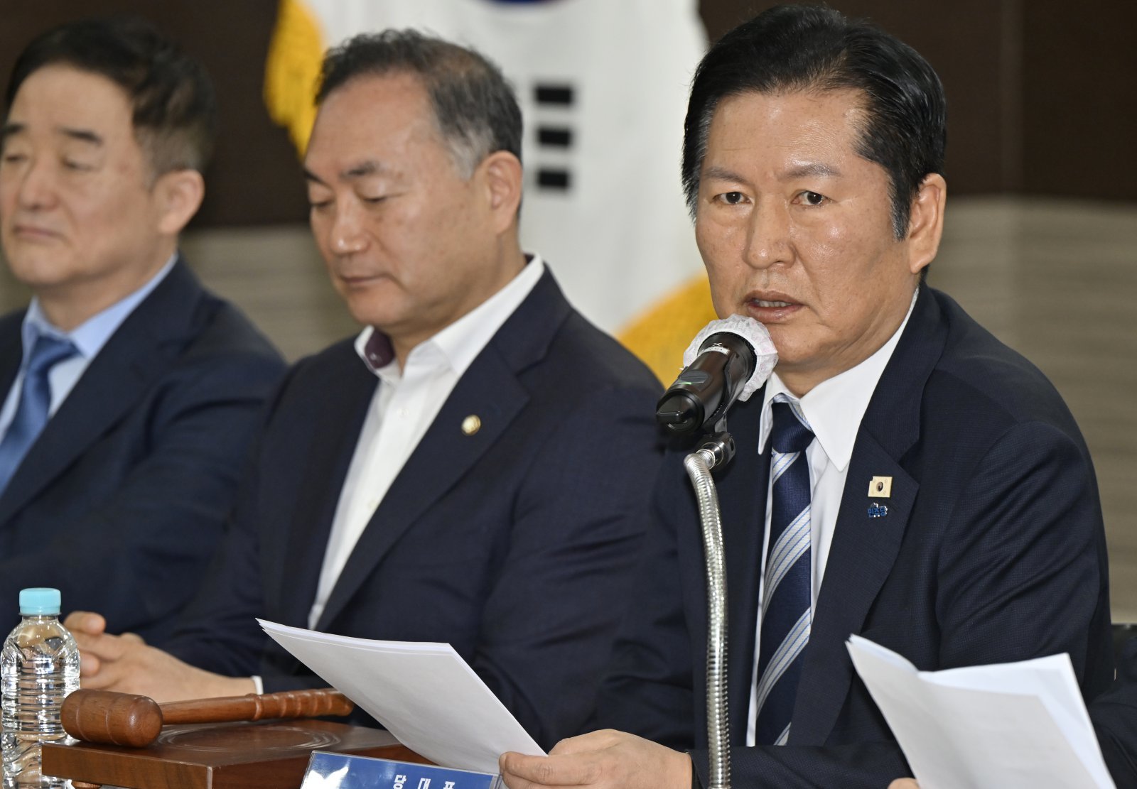 정청래 더불어민주당 대표가 6일 오전 전남 영광군 영광농협 대회의실에서 열린 민주당 전남 현장 최고위원회에서 발언을 하고 있다. 2026.03.06.[영광=뉴시스]