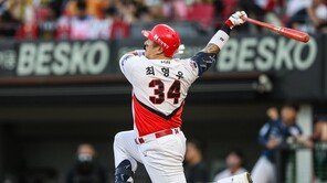 ‘문돌멩’ 문현빈(21·한화)의 방망이는 좀처럼 식지 않는다.문현빈은 26일 프로야구 고척 방문경기에서 1-1 동점이던 9회초에 타석에 들어섰다.그리고 키움 마무리 투수 조영건(26)이 던진 시속 147km짜리 속구를 받아쳤다.이 타구는 발사각은 19도밖에 되지 않았지만 시속 180k…