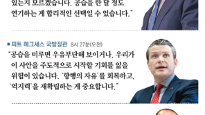 “미국을 상대로 이란의 어떠한 선제공격이 임박했다는 정보를 듣지 못했다. 트럼프가 ‘선택에 의한 전쟁(war of choice)’을 시작했다.”(마크 워너 미 상원 정보위원회 부위원장)“트럼프 행정부는 이란 위협의 범위와 시급성에 대한 주요 정보를 의회와 국민들에게 제공하지 않았다.”…