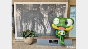그림 숲 앞에 앉은 개구리가 커피 한 잔을 들고 눈을 찡긋하고 있네요. 오늘은 잠깐 쉬어가도 괜찮다고 말해 주는 것 같습니다. ―경기 수원시청에서