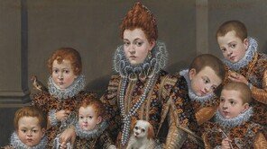 화려한 의상을 걸친 가족이 화면을 가득 채운 초상화다. 가운데 엄마는 여섯 자녀들에게 둘러싸여 정면을 응시하고 있다. 아이들은 저마다 소품을 들고 있는데, 엄마가 감싼 막내만 딸이고 나머지는 모두 아들이다. 대체 이들은 누구고 무엇을 표현하고 있는 걸까. 라비니아 폰타나의 ‘비앙카 델…