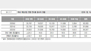 한국 게임 시장이 늙고 있다. 게임산업에 종사하는 평균 연령이 높아지고 있는 것은 물론 개발자들의 고령화와 함께 시장의 콘텐츠도 젊은층 보다는 중장년 층 게이머 공략을 위한 게임들이 많아진 모습이다.■ 개발자 고령화, 20대 급감한국콘텐츠진흥원이 발표한 ‘2024 게임산업 종사자 노동…