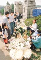 서울 동작동 국립묘지 입구에서 꽃을 사고 있다.