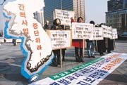 서울 광화문빌딩 앞에서 갯벌의 보호대책을 요구하는 캠페인을