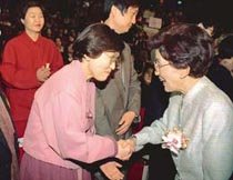 대통령부인 이희호여사(오른쪽)와 여성계인사들이 참석했다.