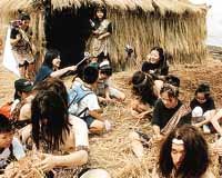 '99 강화 고인돌 문화축제'가 30일 인천 강화군 하점면 부근리 고인돌 유적지에서 개막됐다. 행사장 내에 마련된 '체험의 장'에서 참가자들이 원시생활 체험을 즐기고 있다.