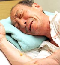 9일 낮 어머님의 사망소식을 적십자사 관계자로부터 전해들은 뒤 실신, 부산 동구 초량동 성분도병원 응급실로 옮겨진 장이윤씨가 침대에 누워 울음을 터뜨리고 있다.