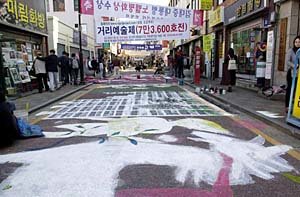 광주.전남지역 젊은화가 35명은 광주 예술의 거리 아스팔트 바닥에 그림과 설치미술을 통한 다른 예술의 체험의 기회를 시민들에게 제공하여 좋은 반응을 얻고있다.