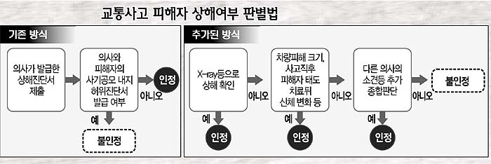 지금까지 의사의 진단서만 있으면 대체로 피해 사실을 인정해 오던 법원이 ‘만약 의사가 의학적 근거 없이 피해자의 말만 믿고 상해진단서를 발급했다면 사고의 크기와 치료 후 신체 변화 등을 종합적으로 고려해 판단해야 한다’는 판결을 내린 것. 이와 함께 ‘꾀병’을 부린 피해자와 그 과정에 개입된 의사 모두 사기범으로 처벌할 수 있는 길도 열어놓았다.