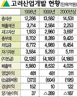 현대리바트는 이듬해 7월 부채 전액을 고려산업개발에 떠맡긴 채 분사했다. 현대알루미늄은 3자 매각방식으로 처리될 계획이었으나 아직 마땅한 인수자가 나타나지 않고 있다. 고려산업개발은 이 과정에서 99년 289억원, 2000년 1∼9월에 185억6000만원의 적자를 냈다. 그런데도 무리하게 사업을 벌여 경영난을 자초했다. 미분양 물량이 쌓이기 시작하고 토지 매입비로 1000억원 이상이 묶여 자금난이 심화된 것. 이 회사의 한 관계자는 “작년 10월 이후 부도는 시간 문제였다”고 고백할 정도다.