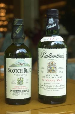 ‘밸런타인’을 생산해온 영국 얼라이드 도멕(Allied Domecq)사는 3일 “용기 디자인을 모방해 소비자들을 혼동시키고 있다”며 ‘스카치 블루’를 생산하고 있는 ㈜롯데칠성음료를 상대로 이 양주병을 사용, 판매하지 못하게 해달라는 가처분신청을 서울지법에 냈다.