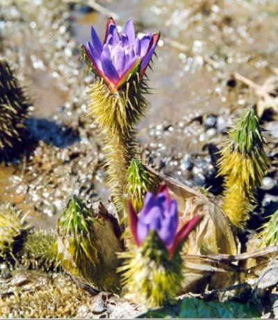 6일 충북 괴산군 불정면 지장리 저수지에 희귀종 가시연꽃들이 아름다운 보라색의 꽃망울을 터트리고 있다.「연합」