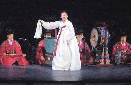 미국 테러참사 희생자를 위한 추모음악회가 6일 오후 서울 세종문화회관 대극장에서 열렸다. 동아일보와 세종문화회관 공동 주최. 대통령 부인 이희호 여사, 남궁진 문화관광부 장관, 토머스 허바드 주한 미 대사 등 각계 인사와 외교사절 등 1500여명이 이날 진혼곡 연주와 씻김굿 공연 등을 관람했다. <사진제공 청와대사진기자단 >