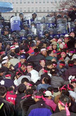 이날 대회에는 300여대의 버스로 전국에서 온 1만여명의 농민들이 참가했다. 경찰은 62개 중대 7200여명을 동원해 만일의 사태에 대비했다.