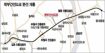 북부간선도로에서 화랑로로 나가는 하월곡 진출램프는 우남아파트 주민들의 반대로 공사가 99년 6월부터 올 11월까지 중단됐다가 재개돼 내년 5월 개통된다. 따라서 마장동 종암동 방향 차량은 기존 화랑로를 이용해야 된다. 또 하월곡 진출램프와 월릉 인터체인지(IC) 주변 확장도로는 내년 9월경 개통될 예정이다.