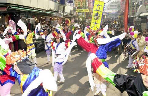 24절기중 첫번째 절기인 입춘을 맞아 한국문화재보호재단은 4일 오후 남대문 시장에서 월드컵의 성공적 개최와 올해의 복을 기원하는 '새봄맞이 지신밟기 행사'를 열었다.