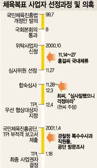 사업자 선정 업무를 맡은 국민체육진흥공단은 11월 27일 26명의 심사위원을 뽑아 1주일 동안 합숙을 하면서 심사를 벌여 TPI를 우선협상 대상자로 선정했다.