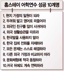 이왕 보내기로 결심한 학부모라면 홈스테이나 어학연수를 알선하는 기관을 사전에 철저히 알아보고 선택해야 하기 때문에 지금부터 서둘러야 한다.