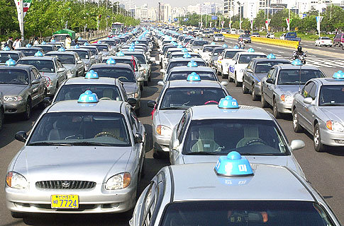 민주택시노조 소속 택시노동자들이 20일 오후 국회앞에서 열린 5.24 총파업 출정식에 참석하기 위해 몰고온 택시가 여의도 도로를 가득 메우고 있다.