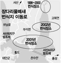 ▽대책〓충남도는 천수만 철새보호를 위해 ‘생물다양성관리계약제’를 내년부터 도입하기로 했으나 겨울철새에 초점이 맞춰져 있다.관리계약제는 농지 소유주가 농약 사용을 줄이고 철새가 작물을 먹더라도 쫓지 않으며 추수 후에는 낱알을 많이 남기도록 하는 대신 그로 인한 영농 손실비를 보전해 주는 제도.공주대 생명과학과 조삼래(趙三來) 교수는 “당국이 농지의 군데군데를 완충지대처럼 사들여 서식지로 활용하면 생태계 보호는 물론 관광에도 큰 도움이 될 것”이라고 말했다.