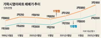 ▽아파트 가격만 들썩〓13일 조합 창립총회 이후 가락시영아파트 가격은 평형별로 1000만∼2000만원 올랐다. 재건축 기대 심리가 시세에 반영된 덕분이다.