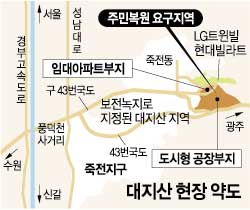 주민 400여명이 대지산 개발 반대 및 복원을 요구하는 연대서명을 마쳤고 조만간 청원서를 경기도와 건설교통부 등에 제출할 예정이다. 경기도의회 우태주(禹泰周·54·용인시 수지읍) 의원도 나서서 파괴된 대지산 복원문제를 경기도의회에 정식 안건으로 상정할 방침이다.