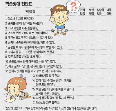 전문의들은 “과거에 비해 학습에 대한 기대치가 높아지고 자녀에게 쏟는 관심이 커지면서 학습장애가 최근 주목 받기 시작하고 있다”고 말한다.