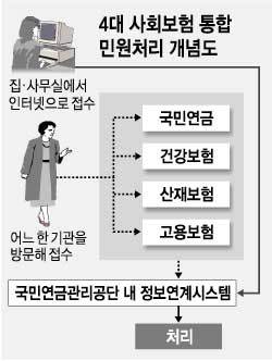 ▽4대 사회보험 정보연계〓지금까지 각각 운영해 오던 4대 보험의 전산망이 연계돼 앞으로는 이들 보험 기관의 어느 한 지사를 방문해도 모든 보험의 가입, 변경, 탈퇴(자격상실) 신고를 할 수 있다.